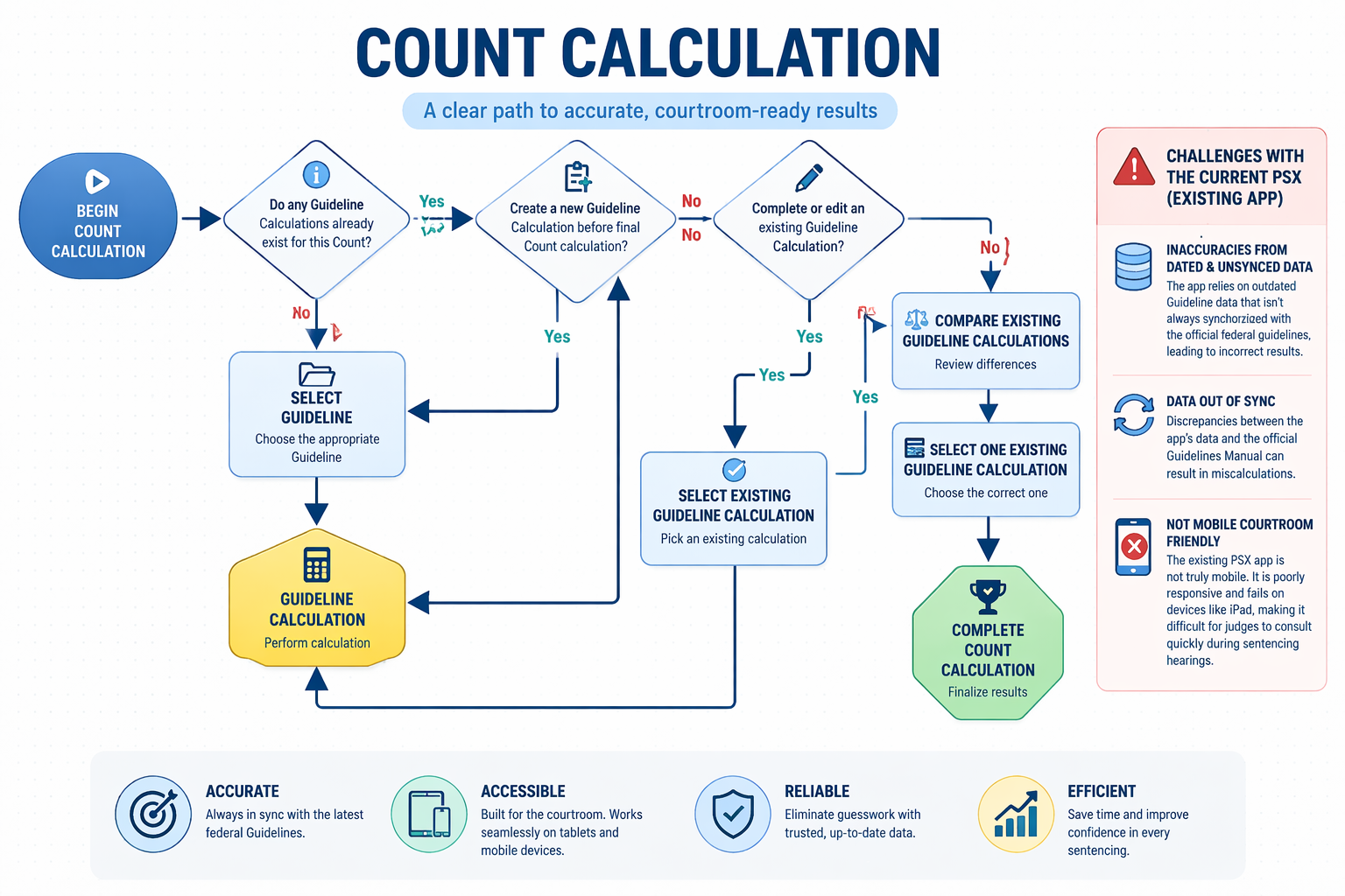The opportunity wasn't just a technology migration. It was a chance to rethink how officers navigate one of the most consequential calculation processes in the federal justice system.